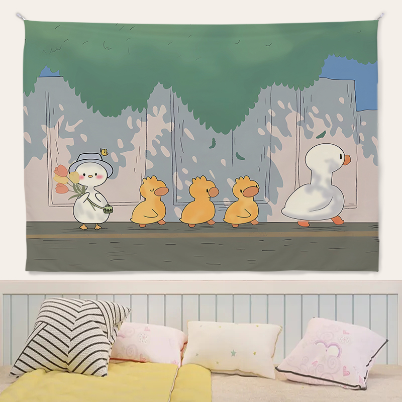治愈氛圍感掛布背景布宿舍房間改造少女心裝飾布可愛鴨子墻布掛布