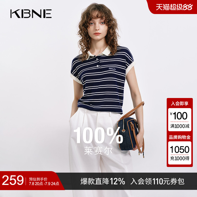 藍色萊賽爾條紋針織衫kbne2025夏季新款短袖打底衫氣質小衫上衣女