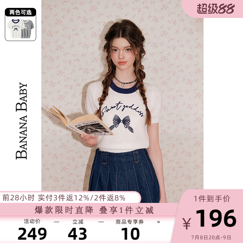 【線條蝴蝶結】BANANA BABY2025年夏新款甜美字母薄針織衫女短袖