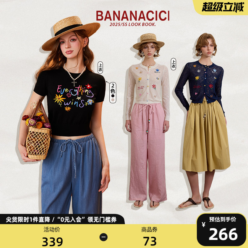 BANANA CICI2025年秋季新款多巴胺花朵刺繡天絲勝利花套頭針織衫