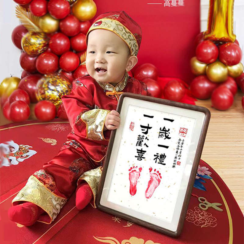 一歲一禮寶寶周歲紀念品手足印泥新生嬰兒滿月百天手腳印留念字畫