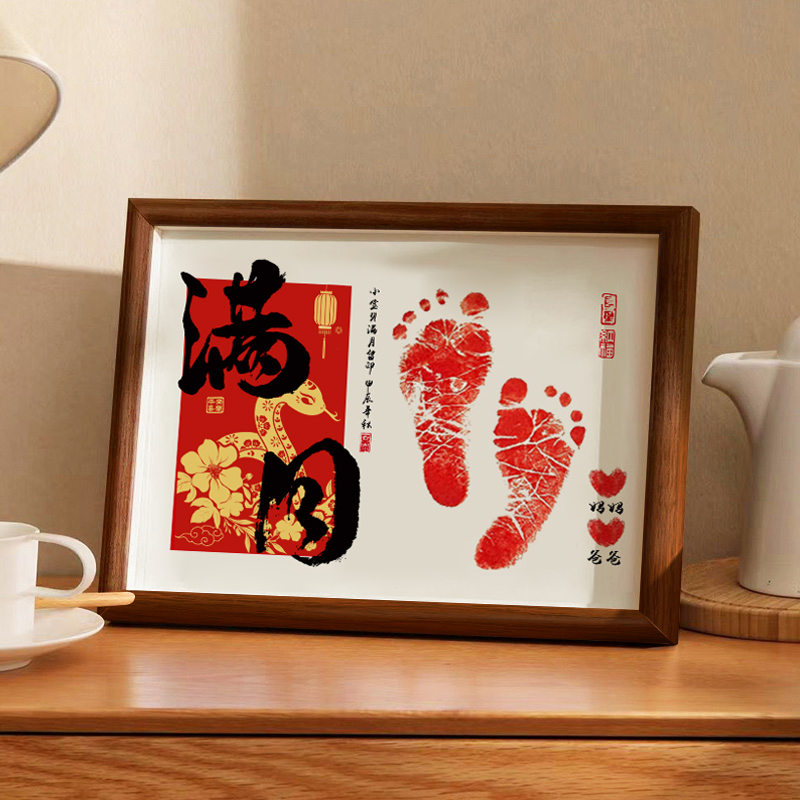 寶寶周歲手足印滿月紀念儀式感百天新生嬰兒一歲一禮腳印留戀相框