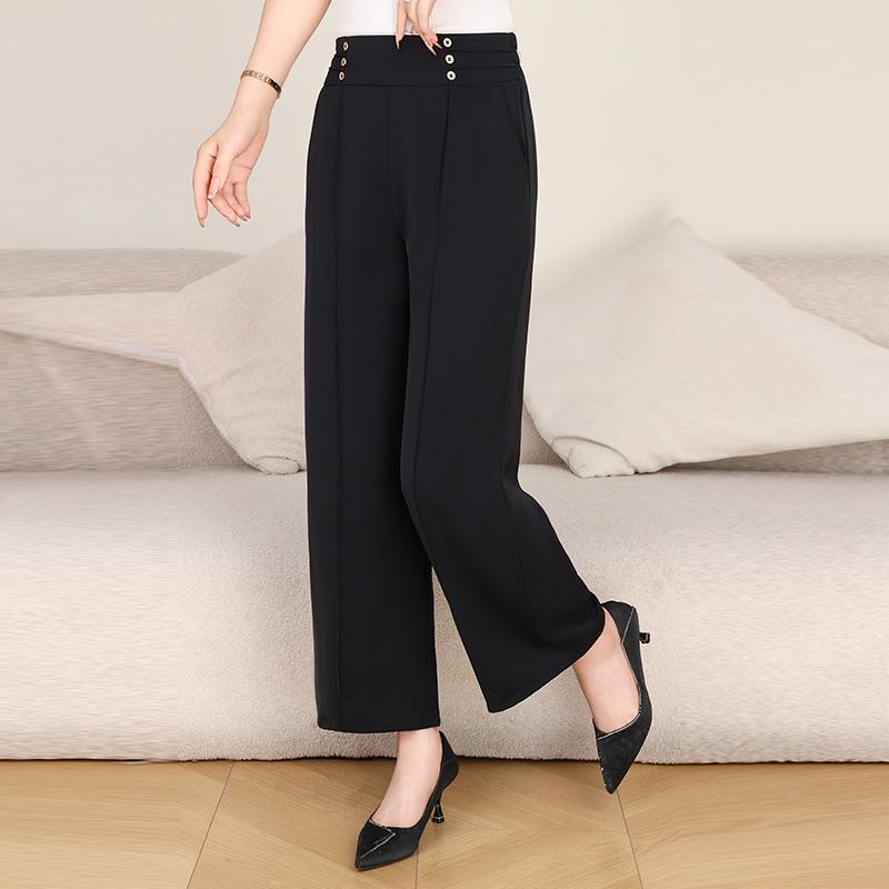 天絲闊腿褲女夏季薄款中老年垂感媽媽裝松緊寬松休閑高腰九分褲女