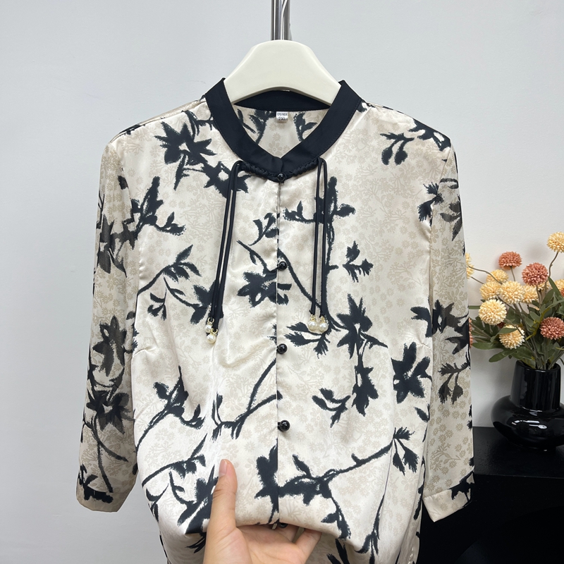 媽媽裝夏季新中式襯衫洋氣高貴小衫衣服中老年仿真絲短袖夏天上衣