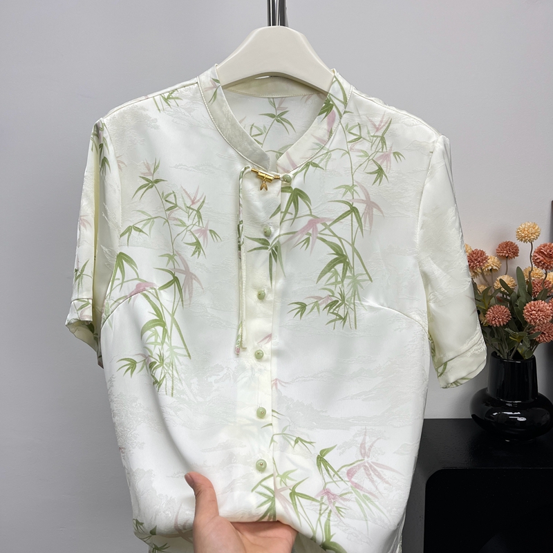 媽媽裝短袖襯衫女夏裝新中式衣服洋氣高貴小衫中老年人仿真絲上衣