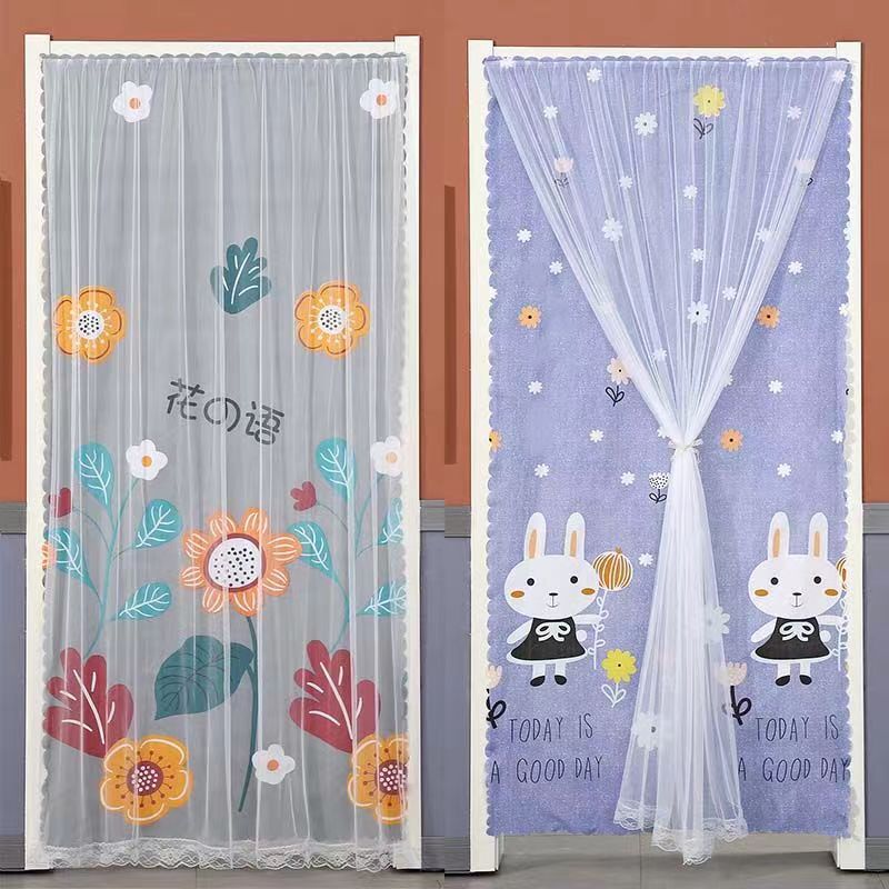 新款免打孔蕾絲門簾遮擋簾半簾裝飾隔斷臥室家用防蚊紗簾隱私簾