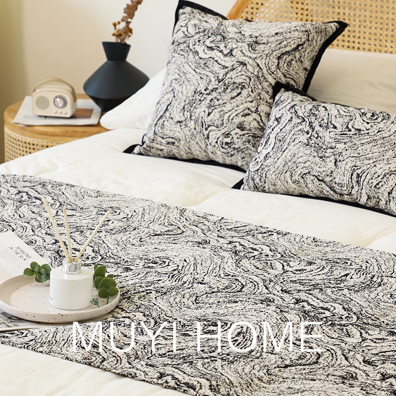 輕奢時尚樣板間質感紋理床旗套裝民宿酒店床尾巾床尾毯子搭巾搭毯