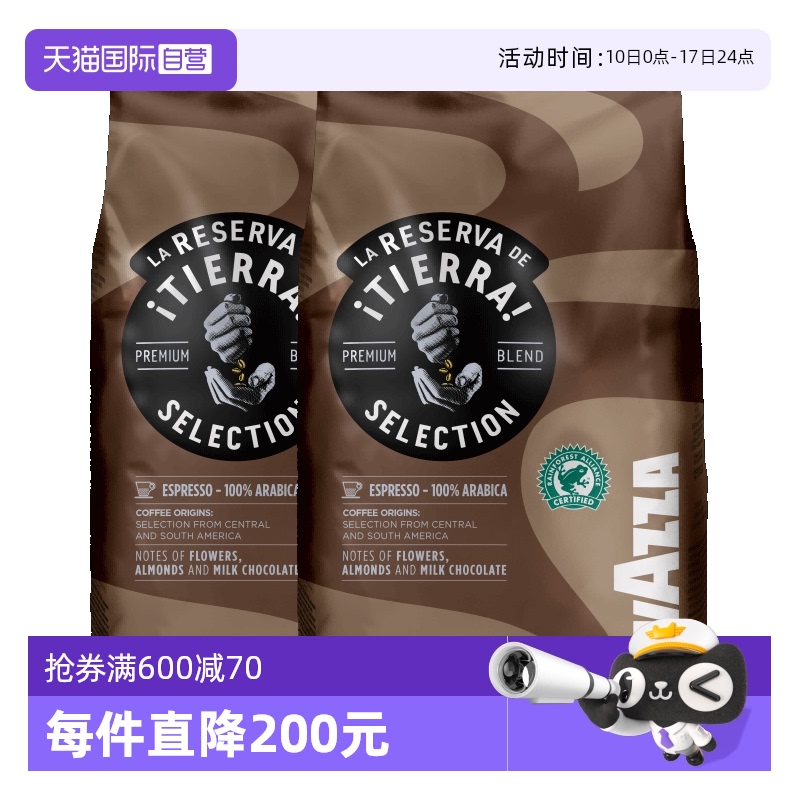 【自營】LAVAZZA拉瓦薩意大利進口大地精選熱帶雨林咖啡豆1KG*2包