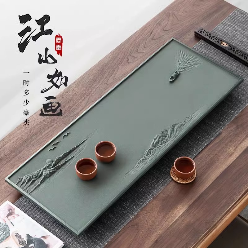 啟航合成烏金石茶盤客廳家用辦公室茶盤茶桌茶臺茶幾茶盤烏金石