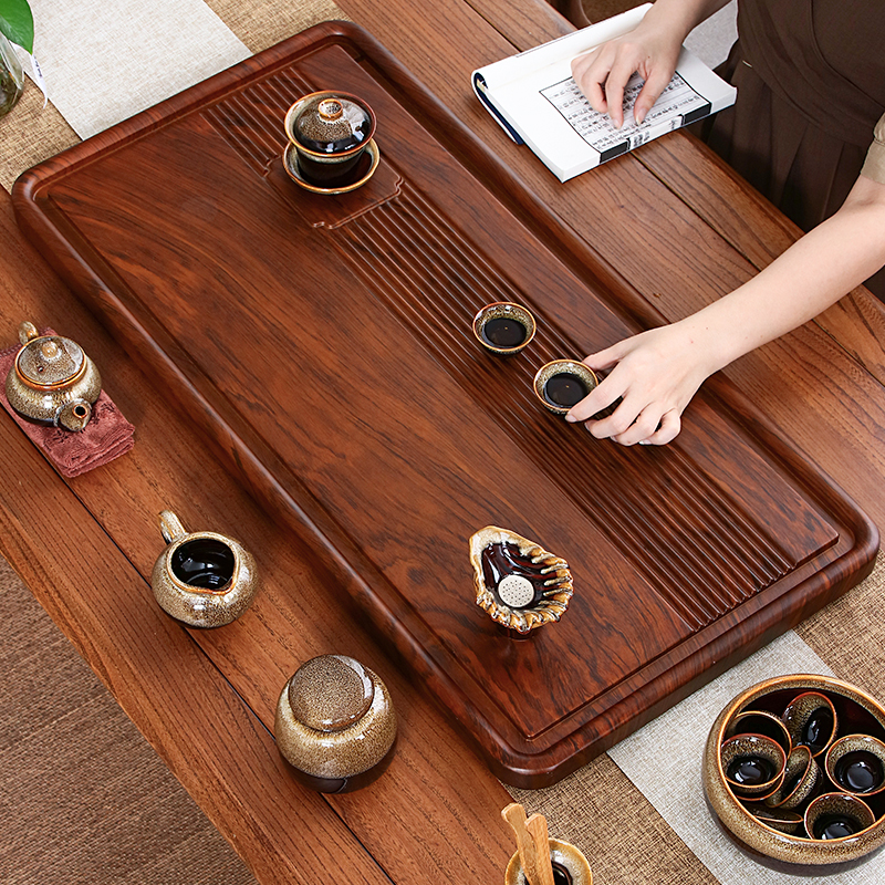 高檔實木茶盤家用整塊長方形簡約功夫茶具套裝排水中式客廳泡茶臺