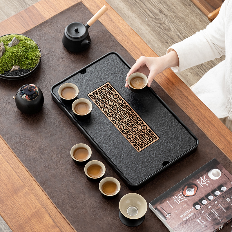 烏金石茶盤功夫茶具茶臺家用茶托盤排水式干泡臺簡約蓄水式儲水盤