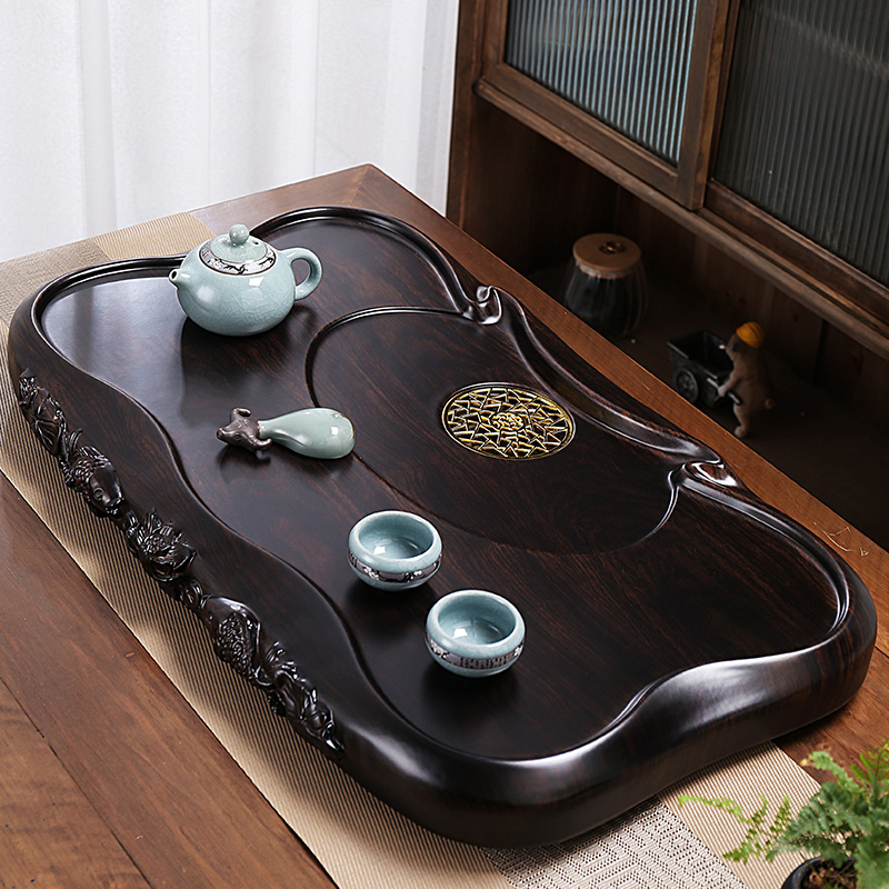 黑檀木茶盤新款家用客廳實木排水式原木高級泡茶托盤茶具茶臺茶海