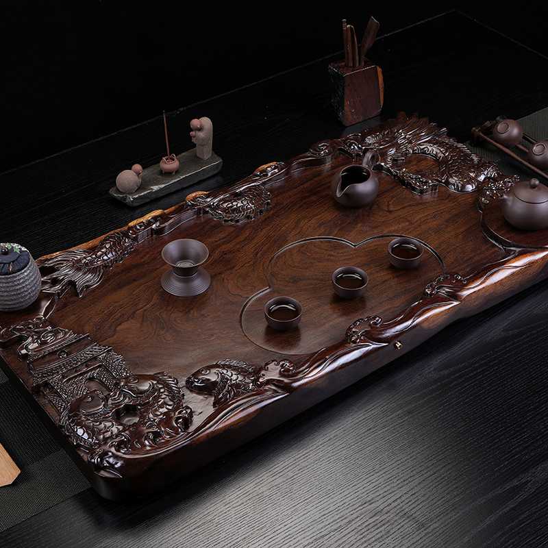 黑檀木茶盤家用客廳整塊實木新款排水式仿原木質高端精致托盤茶臺