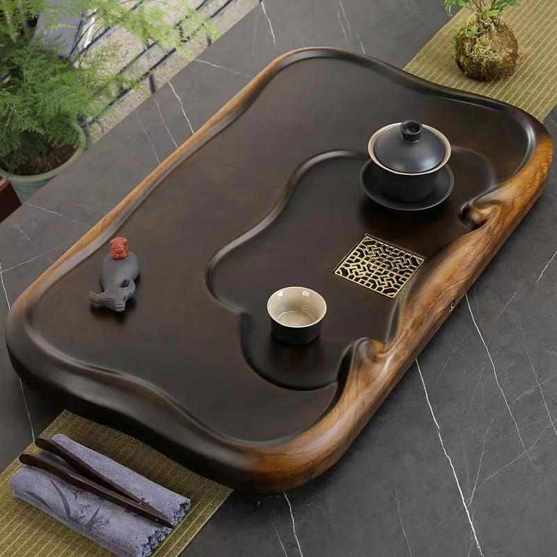 整塊黑檀木茶盤實木家用原木茶臺大小號花梨茶海簡約排水功夫茶具