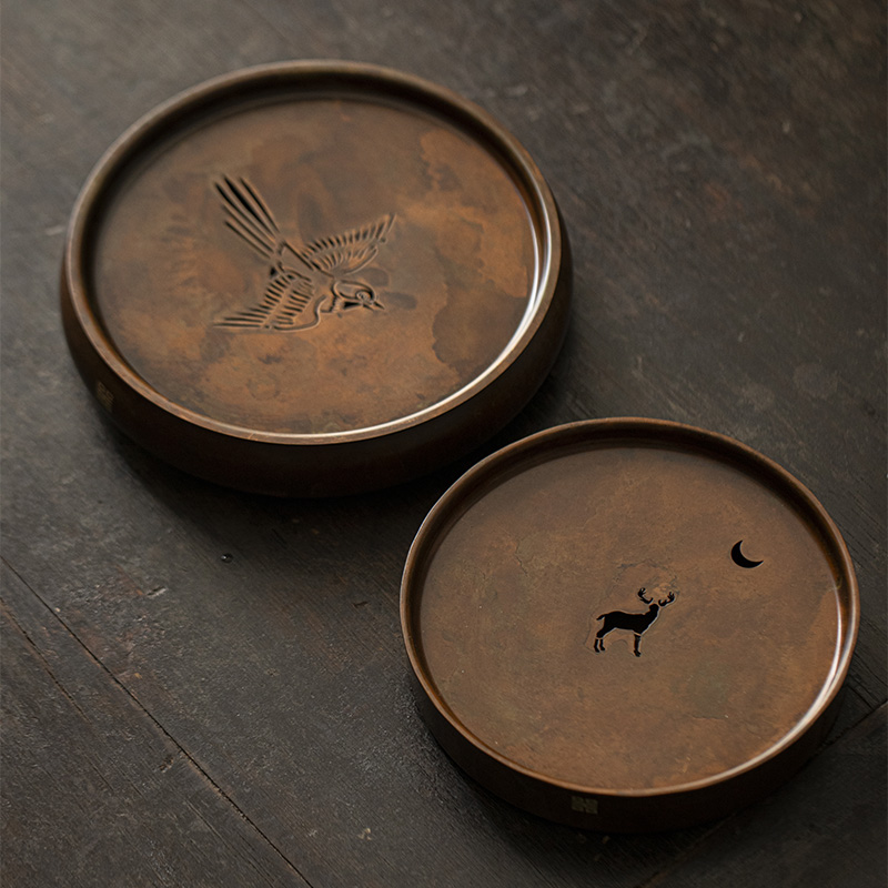 草木祠中式黃銅儲水壺承家用復古茶盤干泡臺茶托盤圓形大容量茶托