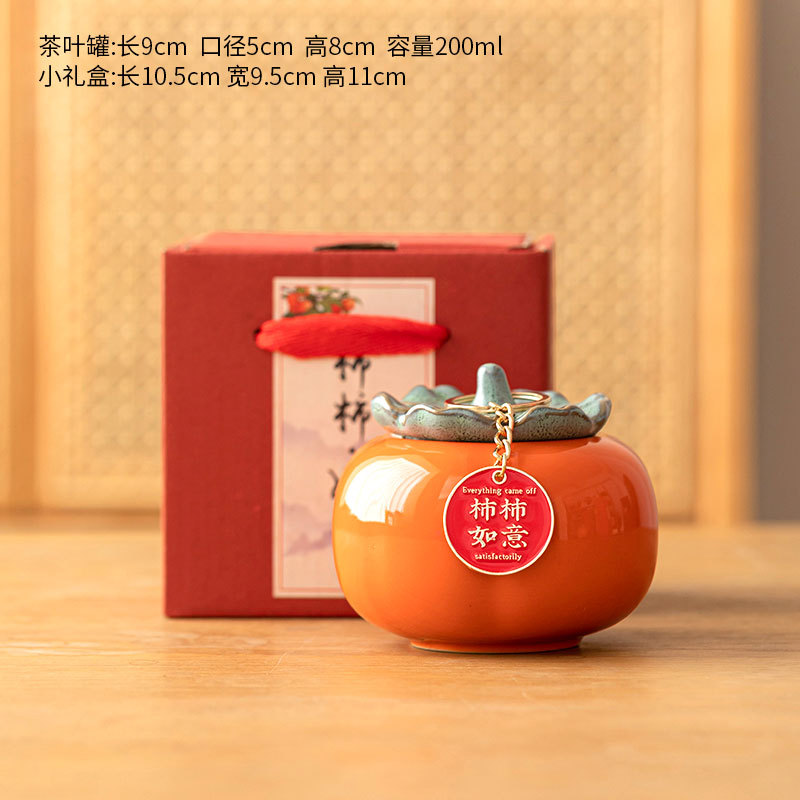 柿子茶葉罐伴手禮禮盒裝婚慶隨手禮事事如意陶瓷密封儲茶罐喜糖罐