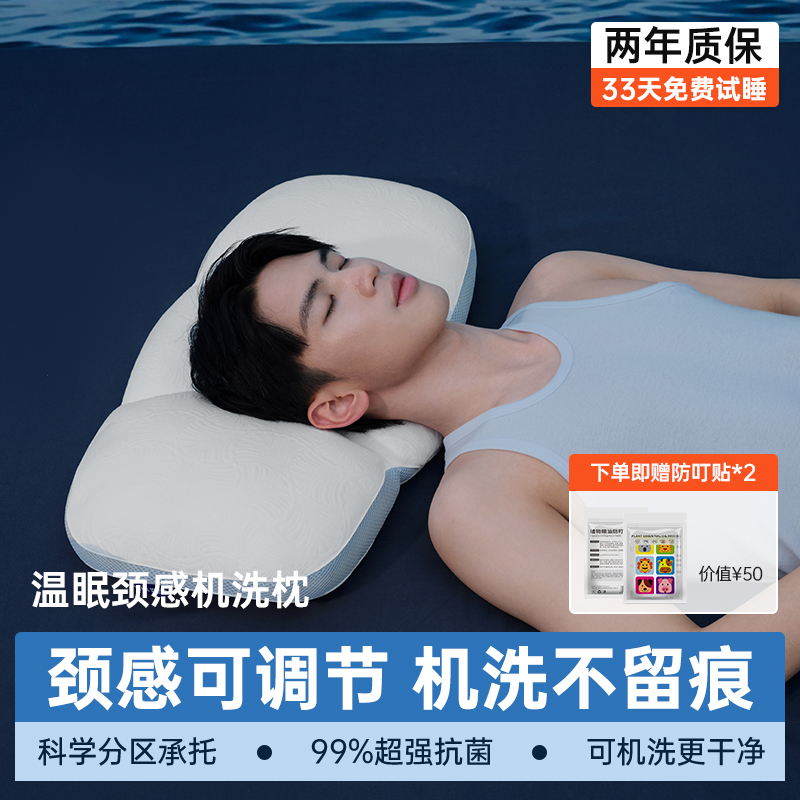 溫眠頸感機洗枕雙層枕芯可水洗護頸助睡抗菌可調節枕頭