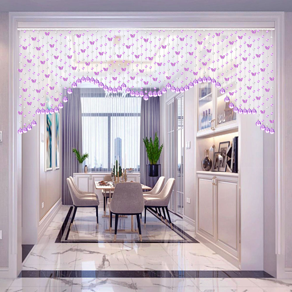 新款水晶珠簾客廳玄關隔斷弧形掛簾屏風門簾蝴蝶裝飾簾子成品半簾