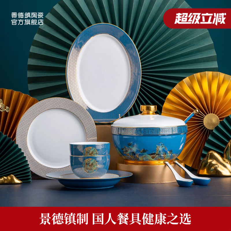景德鎮官方陶瓷碗碟套裝龍珠閣家用新款餐具中式高檔禮盒喬遷送禮