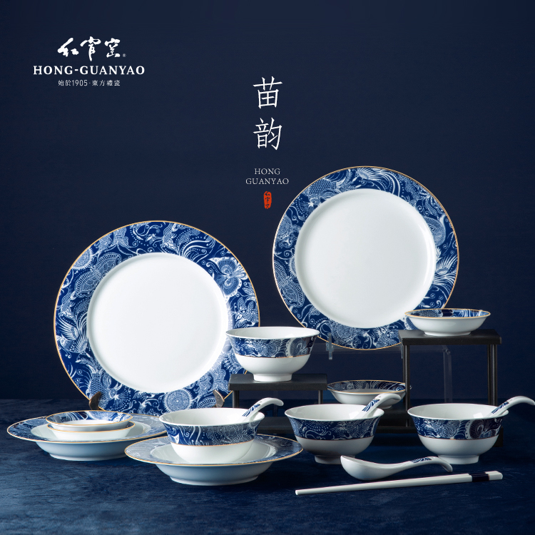 景德鎮官方陶瓷無鉛龍珠閣餐具套裝釉中彩青花吃飯碗碟盤高檔禮物