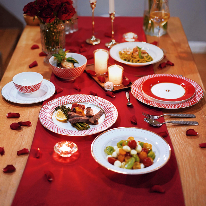 俄皇LOMONOSOV骨瓷STAR紅色喬遷餐具碗碟套裝輕奢高級感家用禮盒
