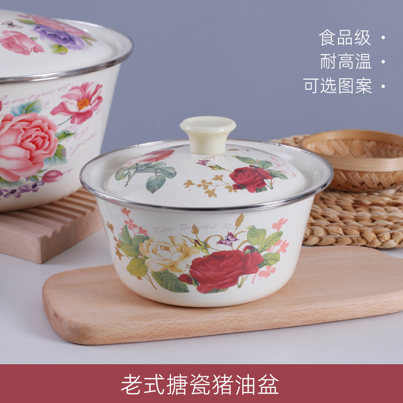 搪瓷豬油罐家用搪瓷盆碗加厚帶蓋食品級老式儲葷油罐廚房拌陷料盆