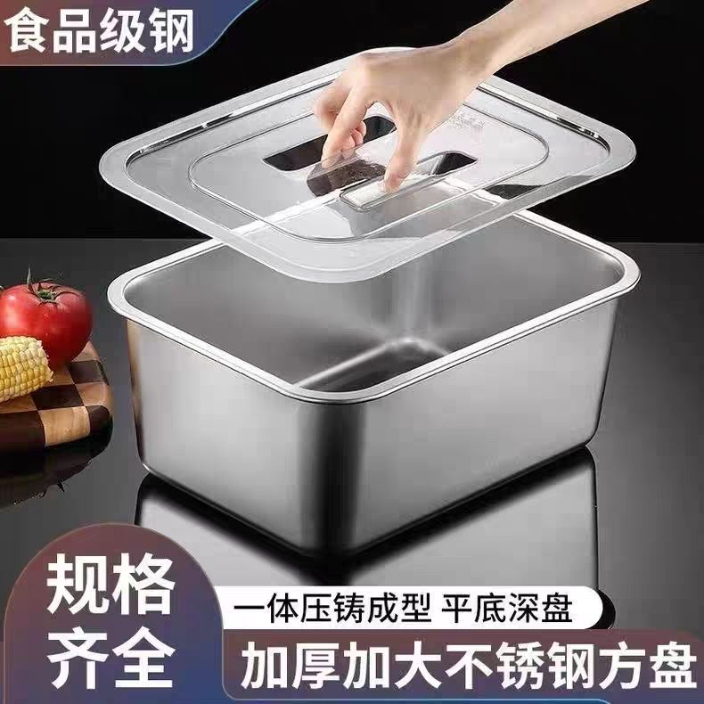 316食品級不銹鋼方盆配蓋帶蓋食品周轉碟盆筐收餐盆特厚加深油盆