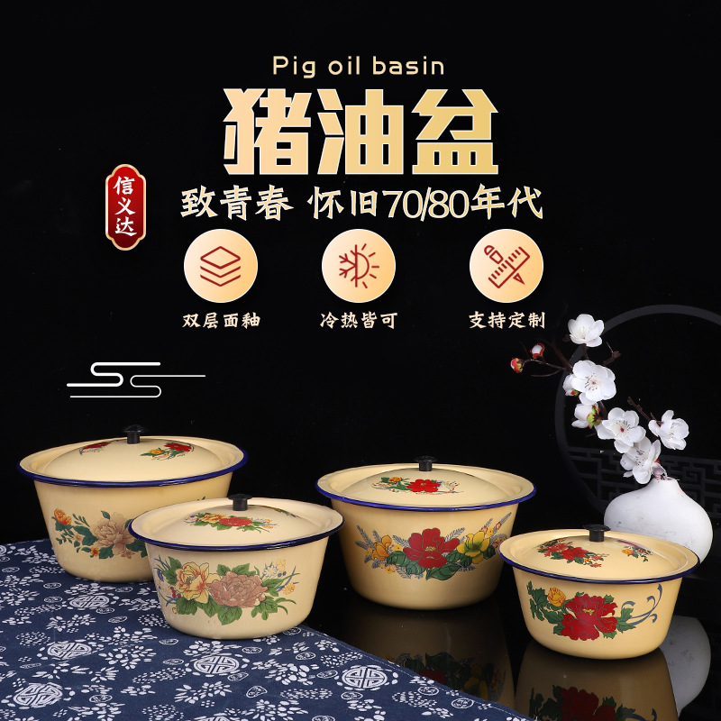 帶蓋老式搪瓷盆懷舊帶蓋面盆保鮮拌餡和面盆豬油盆火鍋復古調料盆