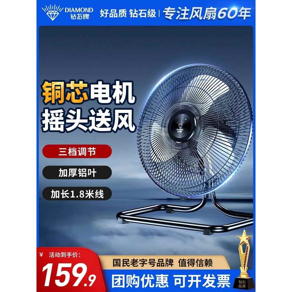 鉆石牌搖頭趴地扇大風力靜音電風扇工業電風扇大功率電風扇強風扇