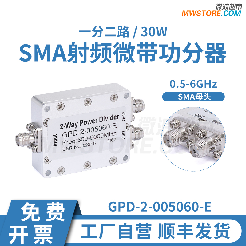 0.5-6G SMA母射頻微帶功分器一分二 分配器 合路器 WIFI測試 30W