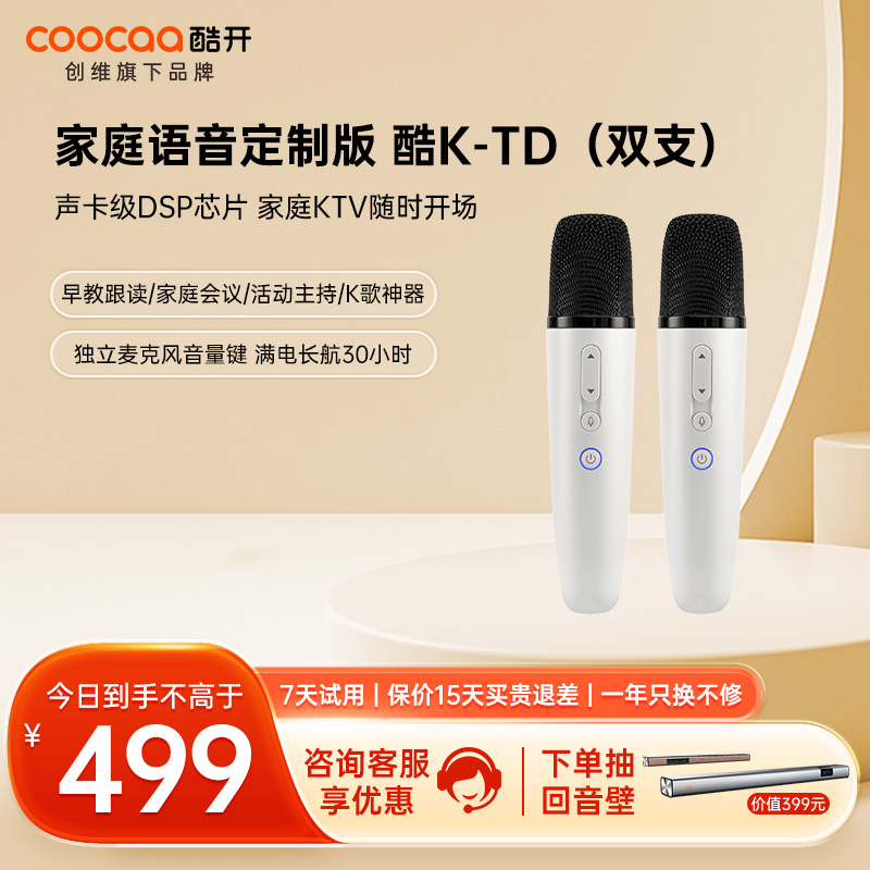 創維酷開家庭KTV立體清晰音效無線降噪多用麥克風TypeC充電款雙支
