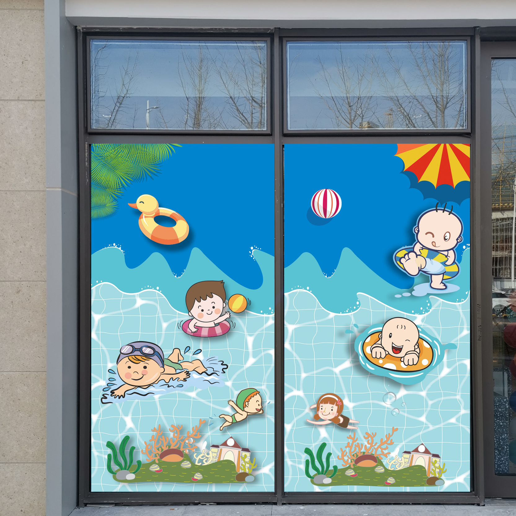 嬰兒游泳館婦幼兒童醫院月子中心磨砂防撞玻璃對開移門遮擋貼紙花