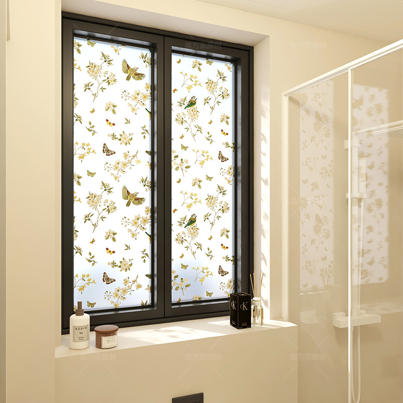 裝萬家浴室衛生間窗戶玻璃貼紙田園花鳥屏風玻璃隔斷移門靜電裝飾