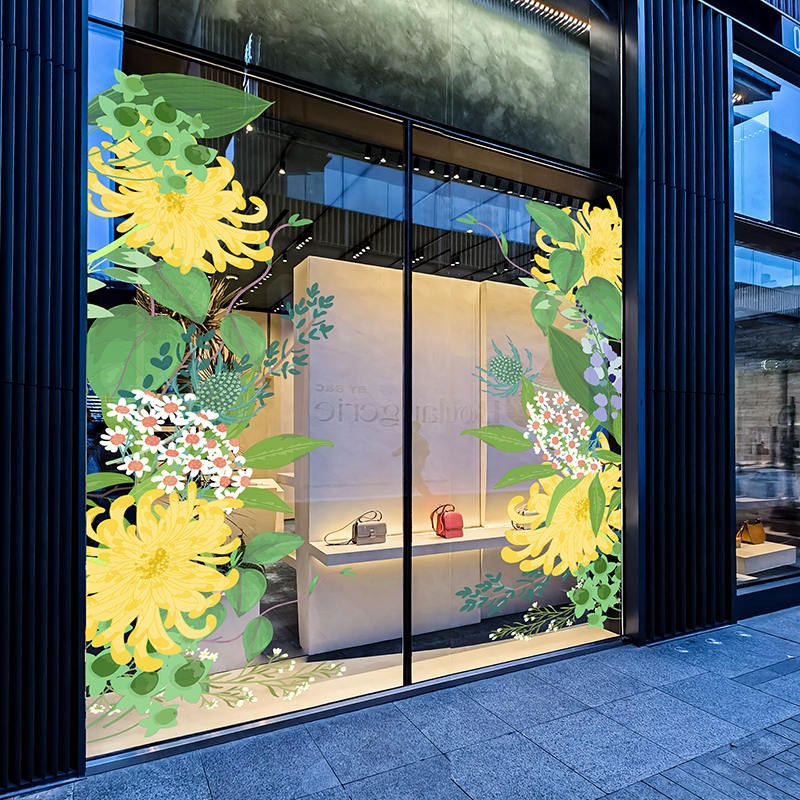 夏季花卉植物裝飾品靜電玻璃門貼紙咖啡店商場櫥窗氛圍裝飾貼無膠
