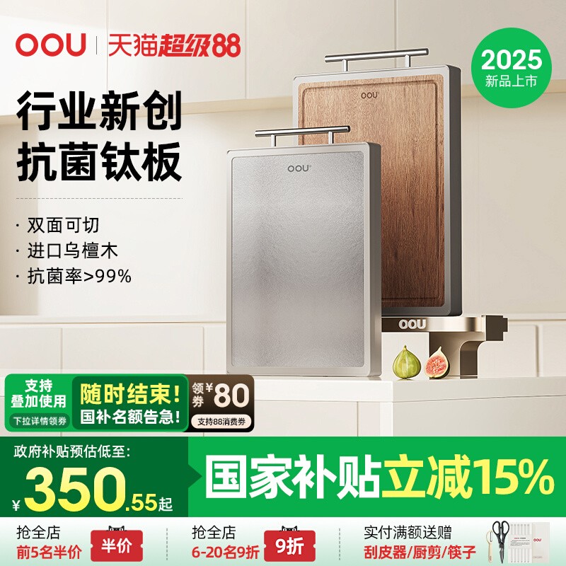 OOU烏檀木鈦菜板抗菌防霉家用實木菜板砧板切菜板雙面廚房專用