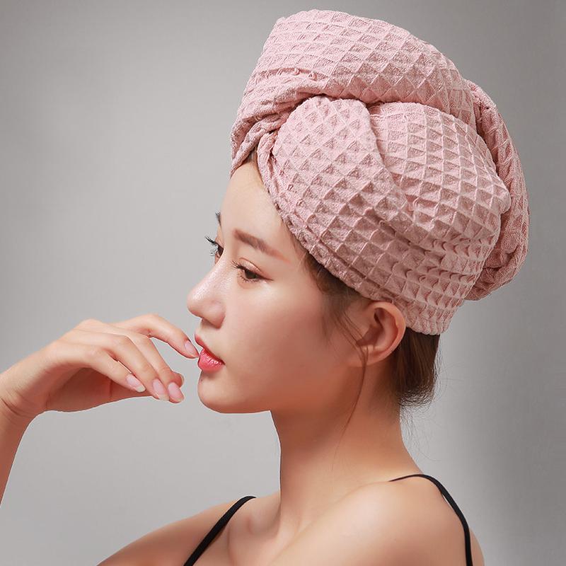 華夫格干發帽女生超強吸水速干帽夏季單層薄款超細纖維包頭巾浴帽