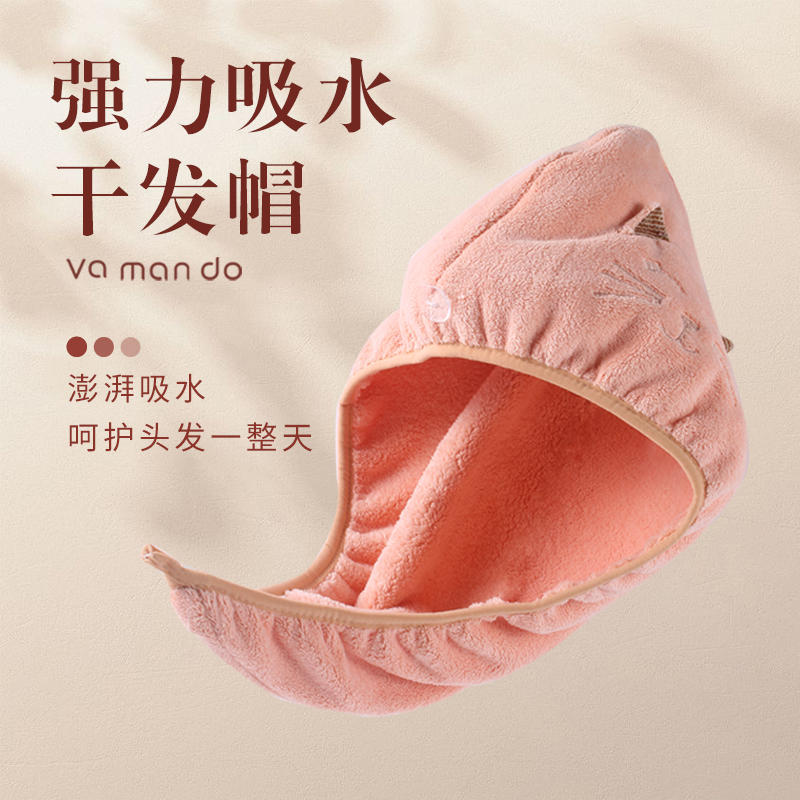 云朵絨洗頭浴帽珊瑚絨雙層干發帽女柔軟加厚吸水套頭包頭巾干發巾