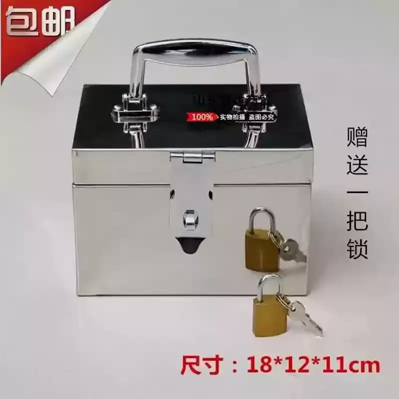 德國進口不銹鋼箱子帶鎖加厚印章盒收納箱存錢罐票據箱雙鎖錢箱工
