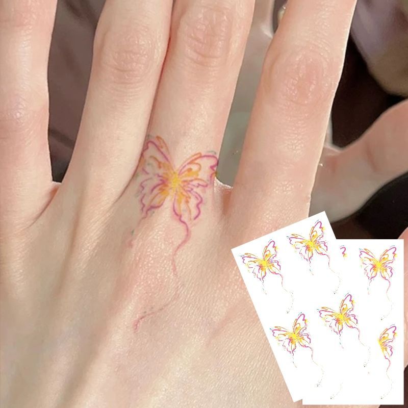 手指蝴蝶彩色紋身貼防水持久小清新手臂個性可愛貼紙線條感紋身貼