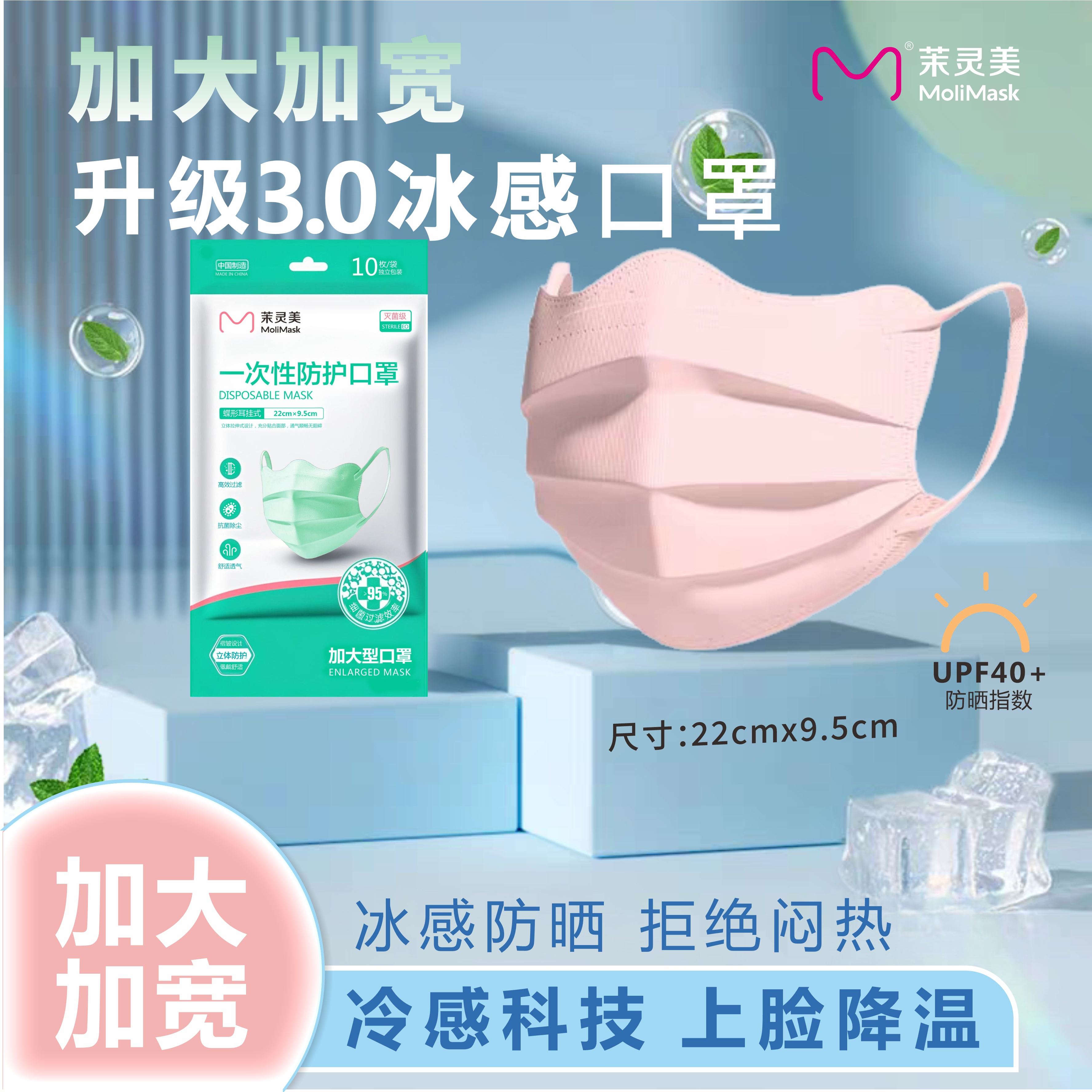 口罩加大蝶形夏季新款冰冷感防曬高顏值大臉專用一次性透氣護眼角