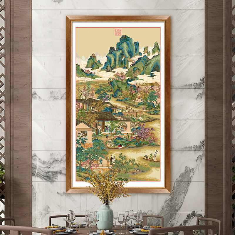 印花法國DMC十字繡套件玄關清朝郎世寧雍正十二月圓明園行樂圖