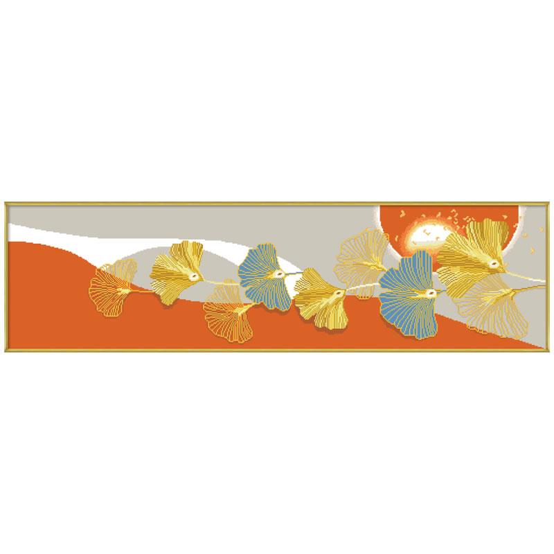 十字繡2023新款現代簡約大氣輕奢線繡臥室銀杏葉手工自己繡床頭畫