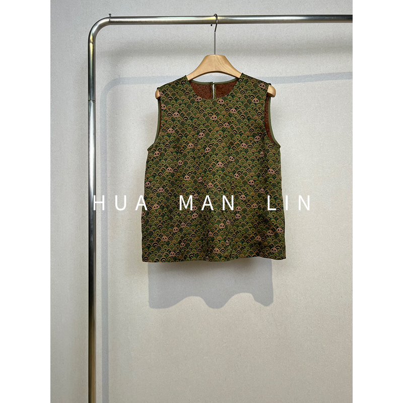 【花滿林】圓領無袖熊貓紅云紗真絲桑蠶絲上衣259490