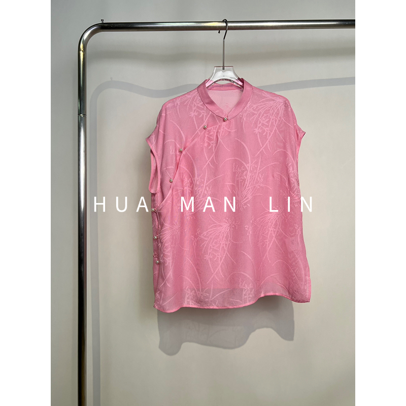 【花滿林】立領斜門襟珍珠扣三經六緯煙羅真絲桑蠶絲上衣251357