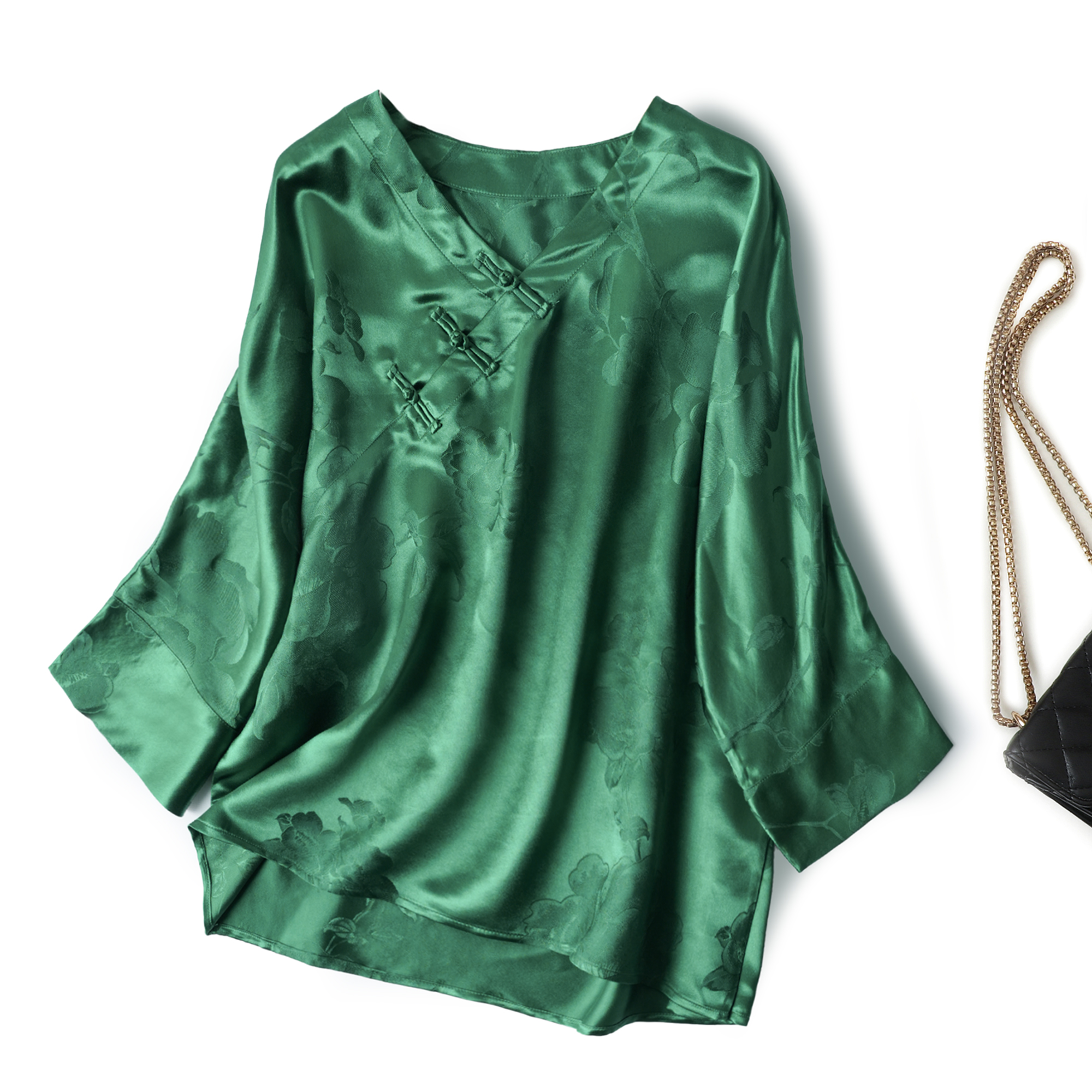 曼加塔【真絲·粉綠寶】夏日新中式中國風休閑上衣5042757