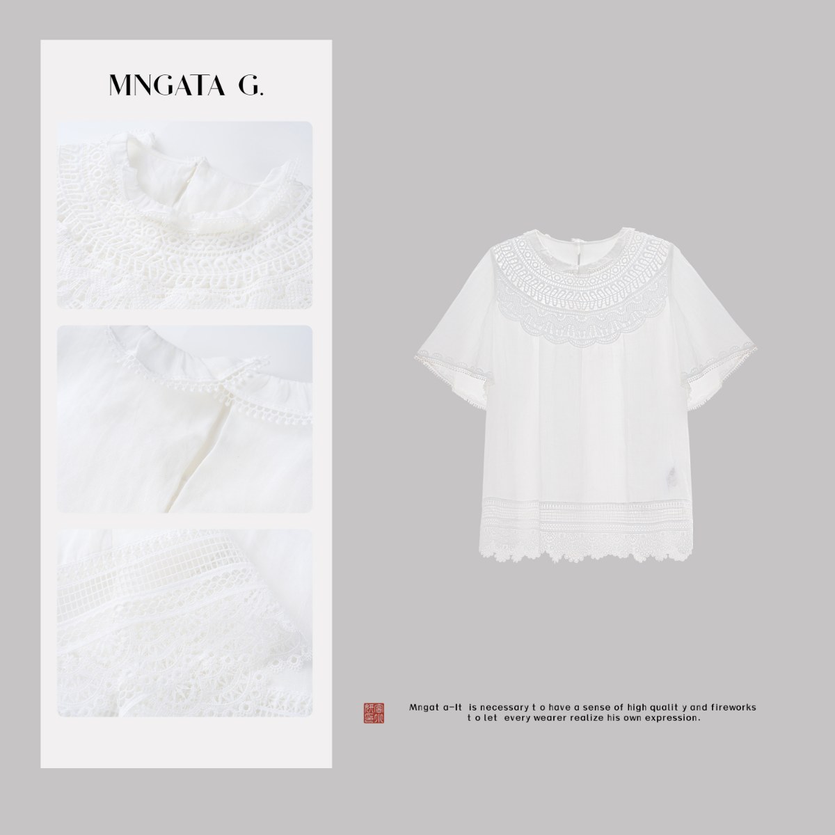 曼加塔【仙芽】亞麻蕾絲夏日新中式中國風休閑內搭短袖5022758