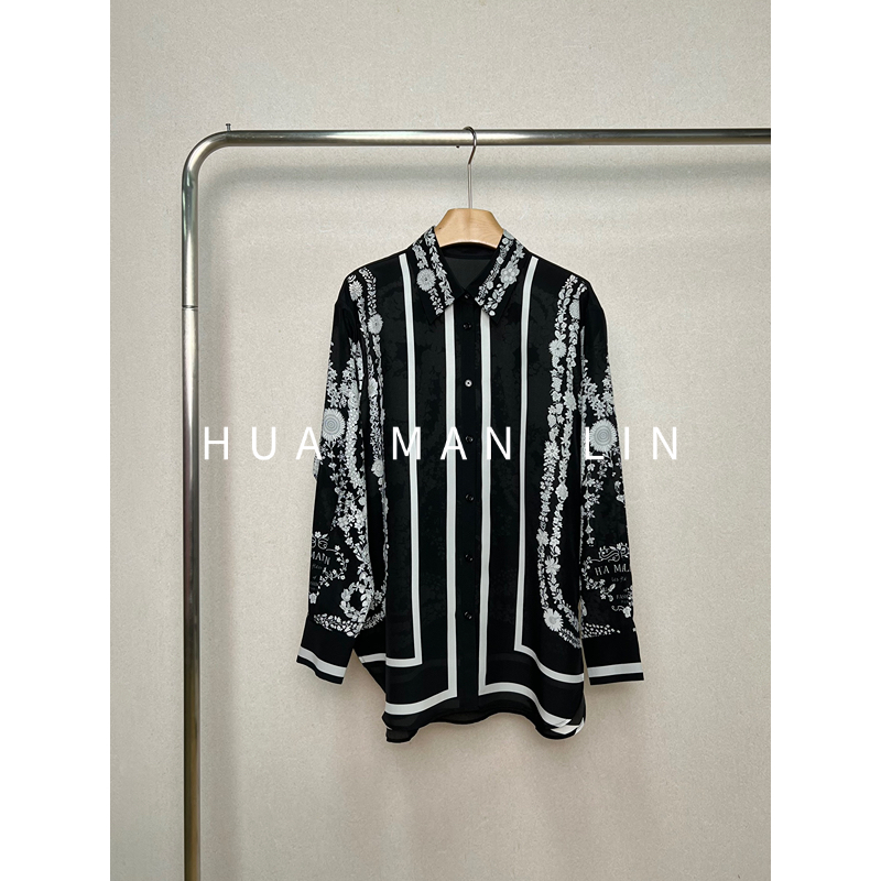 【花滿林】翻領字母定位花印花雙縐真絲桑蠶絲上衣255990