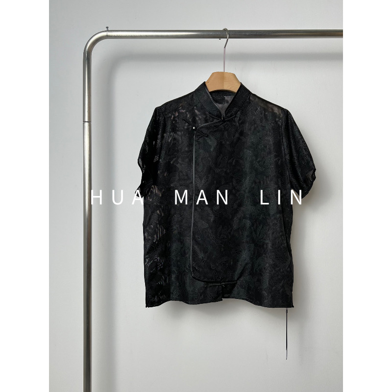 【花滿林 】小立領斜門襟盤扣異色織花羅真絲桑蠶絲短袖上衣2331