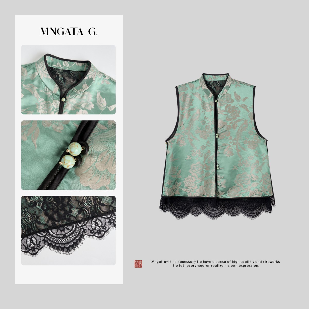 曼加塔【老緞·碧螺春】桑蠶絲夏日新中式國風馬甲5022723