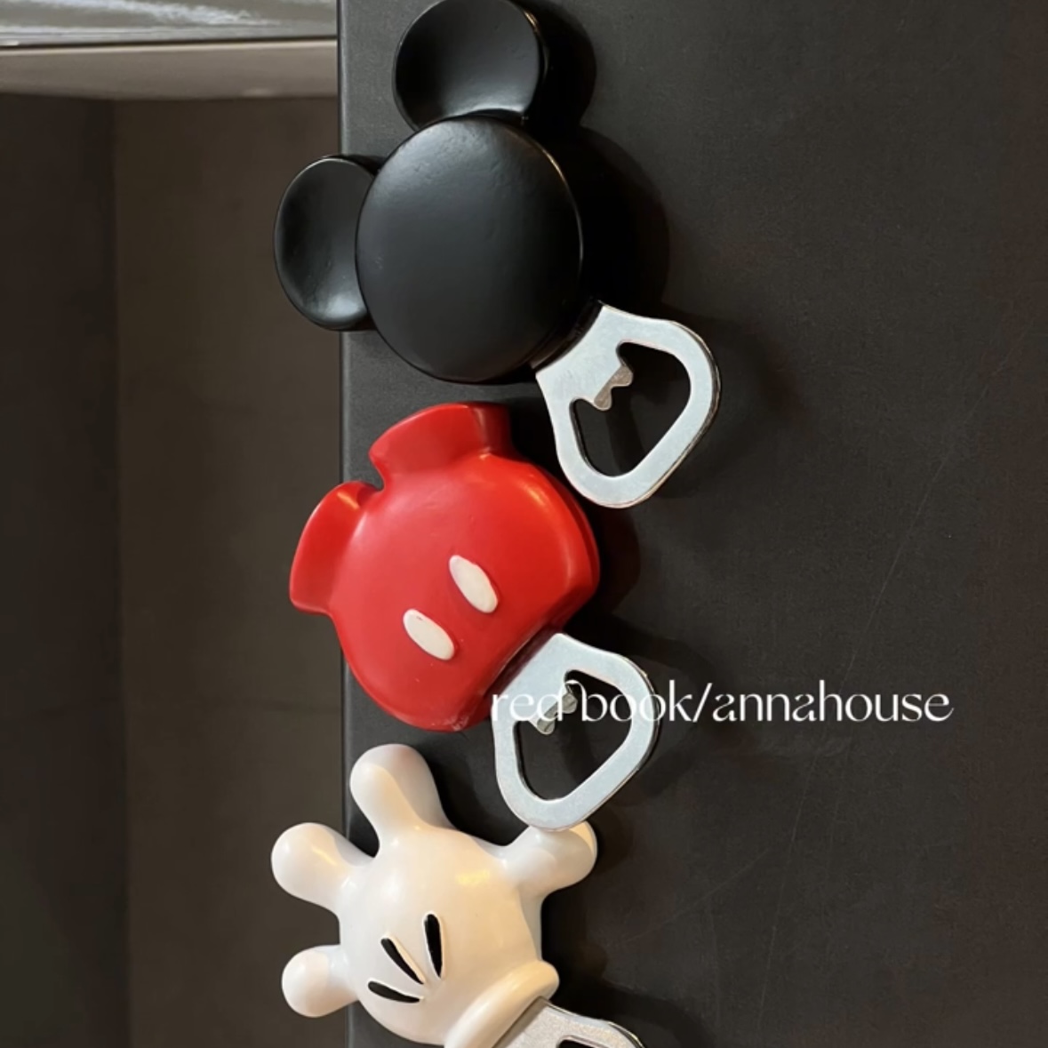 米奇開瓶器薯條漢堡家用多功能創意磁吸款啤酒起子可愛卡通鑰匙扣